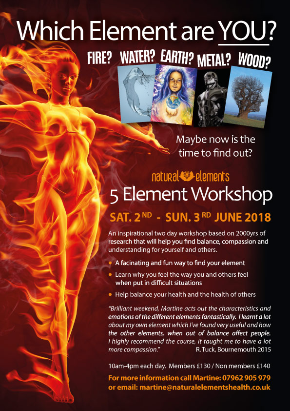 To join this workshop please contact 0800 7566422 , email - enquiries@naturalelementsgroup.co.uk , or if you are one of our students fill out the appropriate form in class!